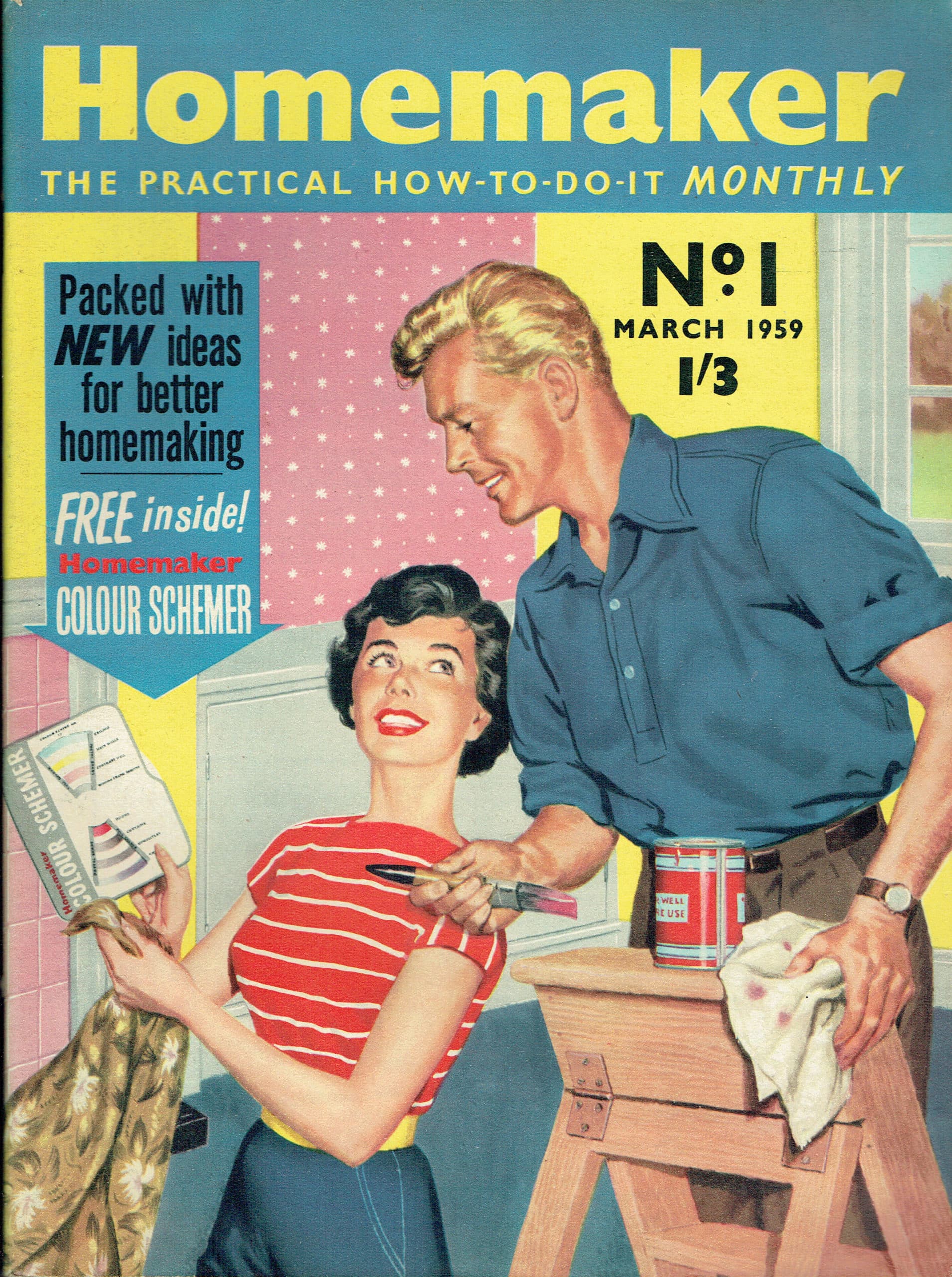 The specific gender roles on the covers of Practical Householder magazine (I have 1950s and 1960s issues) spring to mind; The man of the house is always doing the main task, and his wife (in skirt and heels, of course) is either passing him a tool, bringing him a cup of tea, or simply gazing admiringly at her talented DIY chappie.